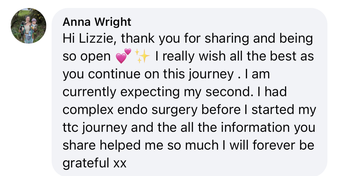 Hi! I am Lizzie Alexander. My husband and I have suffered from infertility for years. I was finally diagnosed with endometriosis after 25 years of pain as part of our fertility journey. A combination of surgery, finding a Naturopath and then changing my diet and lifestyle finally meant we got pregnant. Now we have a gorgeous (big) boy!